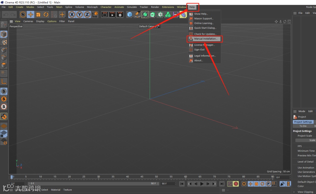 21.点击界面上方的【Help】选项,点击【Manual Installation】。
