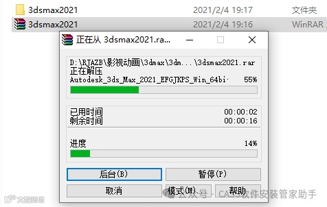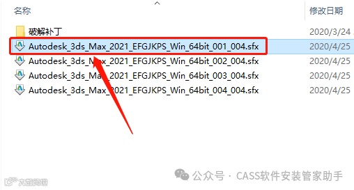 4.双击打开【Autodesk_3ds_Max_2021_EFGJKPS_Win_64bit_001_004.sfx】安装程序。