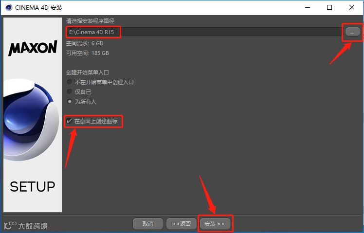 27.勾选【在桌面上创建图标】,然后点击右上方的【···】设置软件安装路径,设置好安装路径后点击【安装】。温馨提示:软件安装的目录不能带中文。