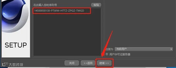 23.填写用户注册信息,然后使用Ctrl+v快捷键粘贴好序列号,点击【继续】。