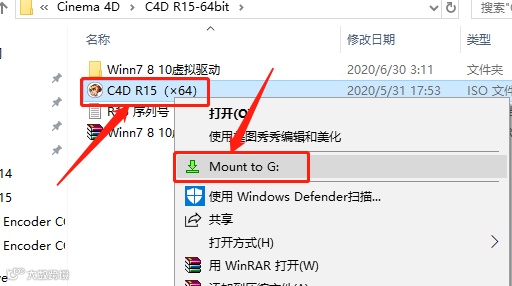 13.返回到【inema4D R15】安装包,鼠标右击【C4D R15(x64)】,选择【装载到······】。
