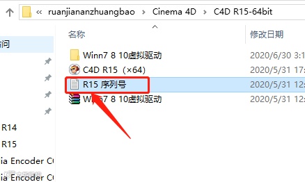 21.返回到【inema4D R15】安装包,打开【R15 序列号】文本。