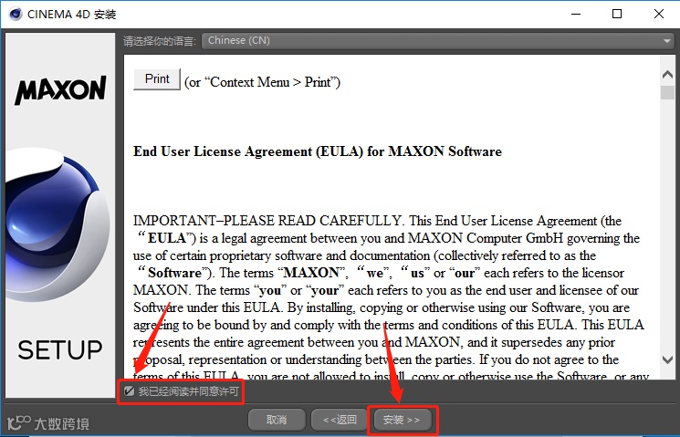 26.勾选【我已阅读并同意许可】,点击【安装】。