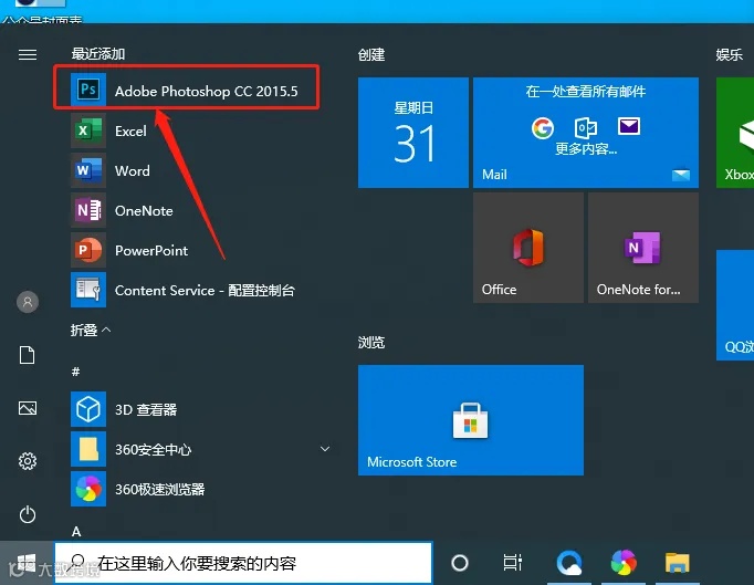 10.桌面左下角的开始菜单栏中找到并打开ps cc2015.5软件。
