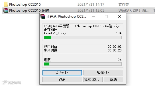 1.下载ps2015软件安装包,鼠标右击压缩包选择【解压到当前文件夹】。