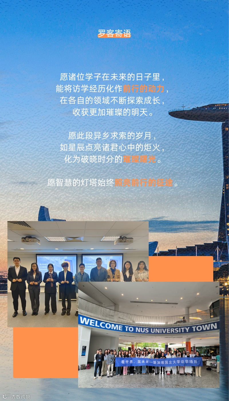 无论是课堂上与教授之间的深刻交流,还是小组成员之间废寝忘食的沟通探讨,亦或是当地地标所流露出的关于亚洲人的独特情怀与亚洲文化的多元融合,在增进了自身专业能力、英语能力的同时,让我充分感受了别致的异国文化,这必将成为我难忘的美好回忆。