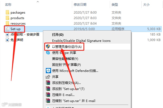 4.在打开的文件夹中,鼠标右击【Set-up】程序,选择【以管理员身份运行】。