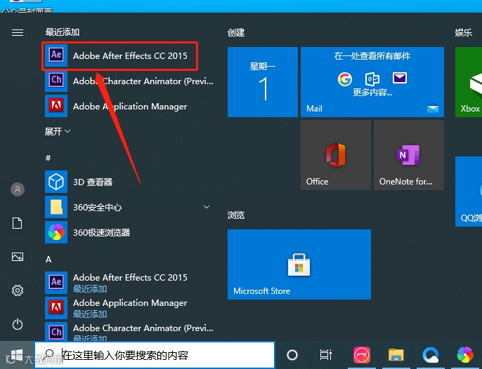 23.开始菜单栏中找到并打开AE CC2015软件。