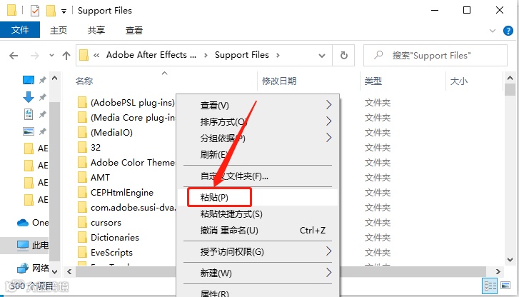 21.在打开的【Support Files】文件夹空白处,鼠标右击【粘贴】刚才复制的amtli.dll文件。