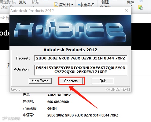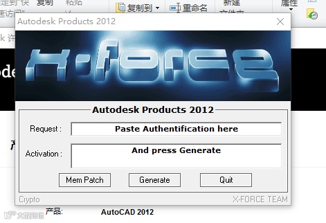 22.使用快捷键【Ctrl+C】复制申请号,然后使用快捷键【Ctrl+V】粘贴至注册机里面的Request方框中(记得删除原Request中的内容),粘贴好申请码后点击注册机左下角的【Mem Patch】。