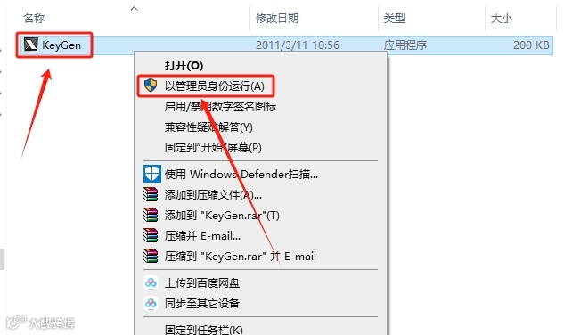 20.鼠标右击【KeyGen】注册机,选择【以管理员身份运行】。