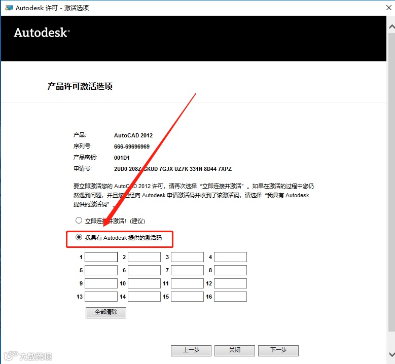25.选中Activation方框中生成的激活码(这里一定要仔细检查复制的激活码是否完整),使用快捷键【Ctrl+C】或者鼠标右击复制,然后把复制的激活码使用快捷键Ctrl+V粘贴至激活码方框中,最后点击【下一步】即可。