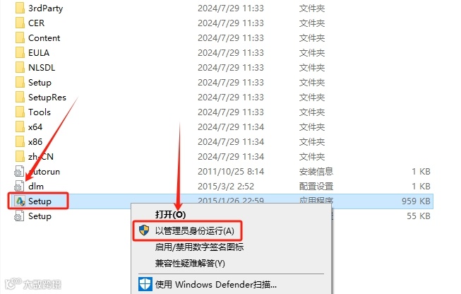 5.鼠标右击【setup】安装程序,选择【以管理员身份运行】。