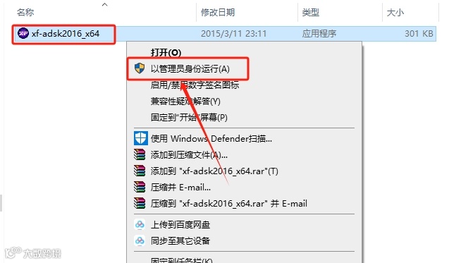 20.鼠标右击【xf-adsk2016_x64】注册机,选择【以管理员身份运行】。