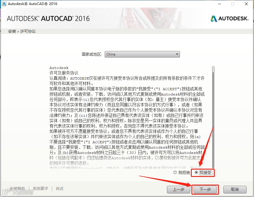 7.选择【我接受】,然后点击【下一步】。