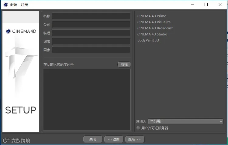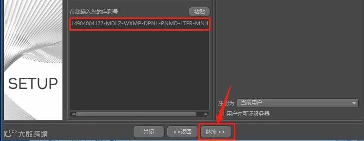 10.任意填写用户注册信息,然后使用Ctrl+v快捷键粘贴好序列号,点击【继续】。