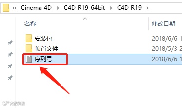 8.返回到【Cinema4D R19】安装包,打开【r17 序列号】文本。