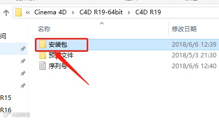 3.打开解压的【Cinema4D R19】文件夹,打开【安装包】文件夹。