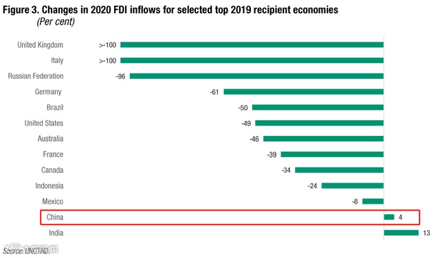 此前美国数十年来都居于首位,但2020年美国全年FDI下降了49%,而中国则增长了4%。