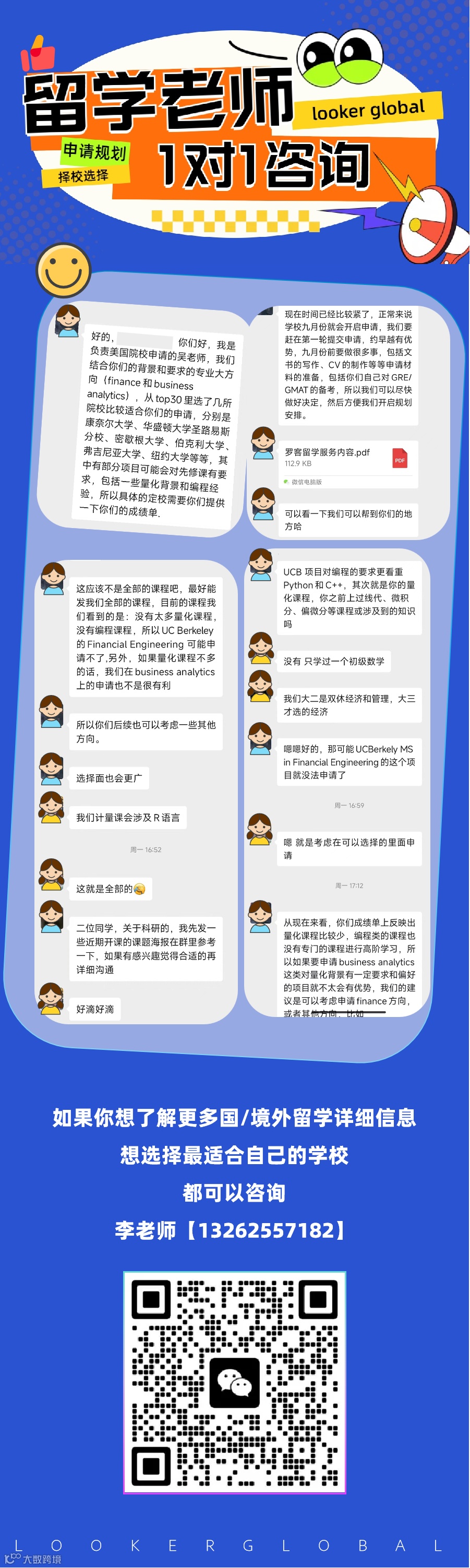 附:根据院校的录取数据来看,通常来说,可用的GRE分数最低为320,GMAT最低分数650;GRE 330, GMAT 670以上可以算的上有竞争力的分数。