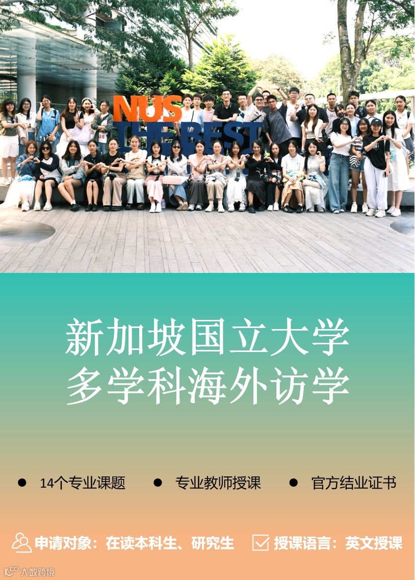 25年寒假有14大精选课题,供同学们选择,部分课题还会组织学生参访若干知名政企及参与500强企业实训,让学生深度了解新加坡的经济、文化等方面内容,丰富学生的海外阅历。