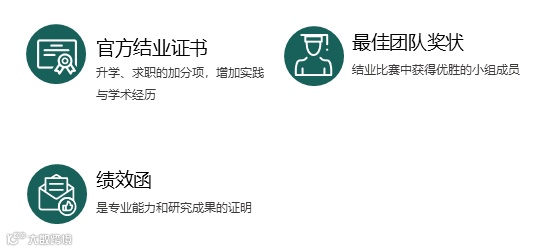 顺利完成项目且满足考核要求后(项目考核:由课程出勤、小组结业报告、小组结业汇报等综合评定)学员将获得以下荣誉:
