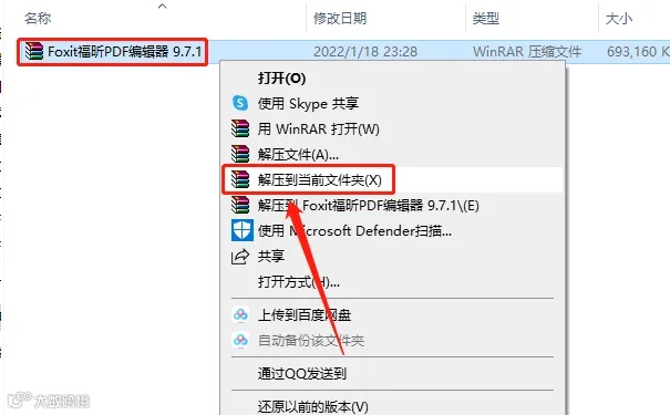1.打开软件安装包,鼠标右击压缩包选择【解压到当前文件夹】。
