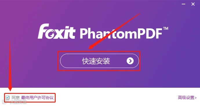 4.勾选【同意最终用户许可协议】,点击【快速安装】。