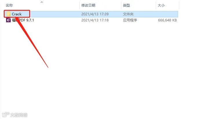 7.返回到解压的【Foxit福昕PDF编辑器 9.7.1】文件夹,打开【Crack】文件夹。