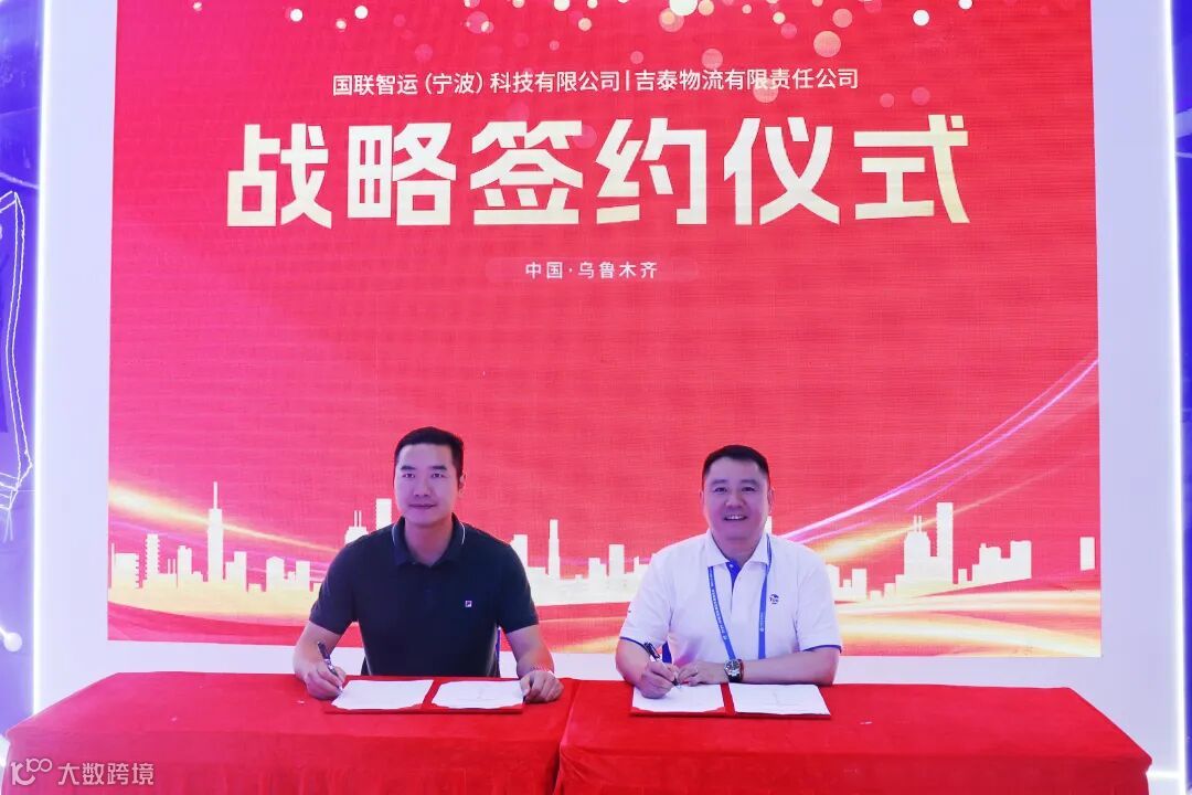 涂多多高级副总裁、智运总经理安珅与吉泰物流有限责任公司新疆分公司总经理田龙贵共同签署战略合作协议。