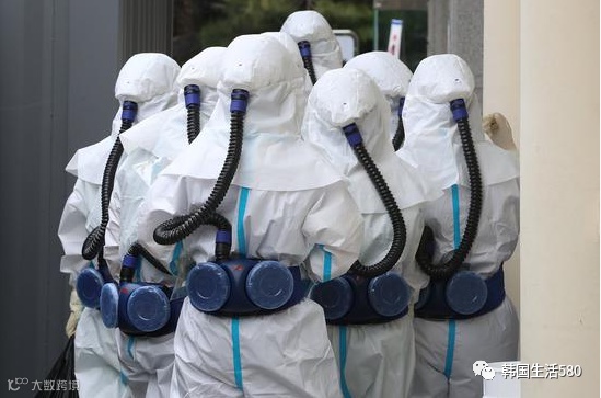 穿防护服的韩国医护人员