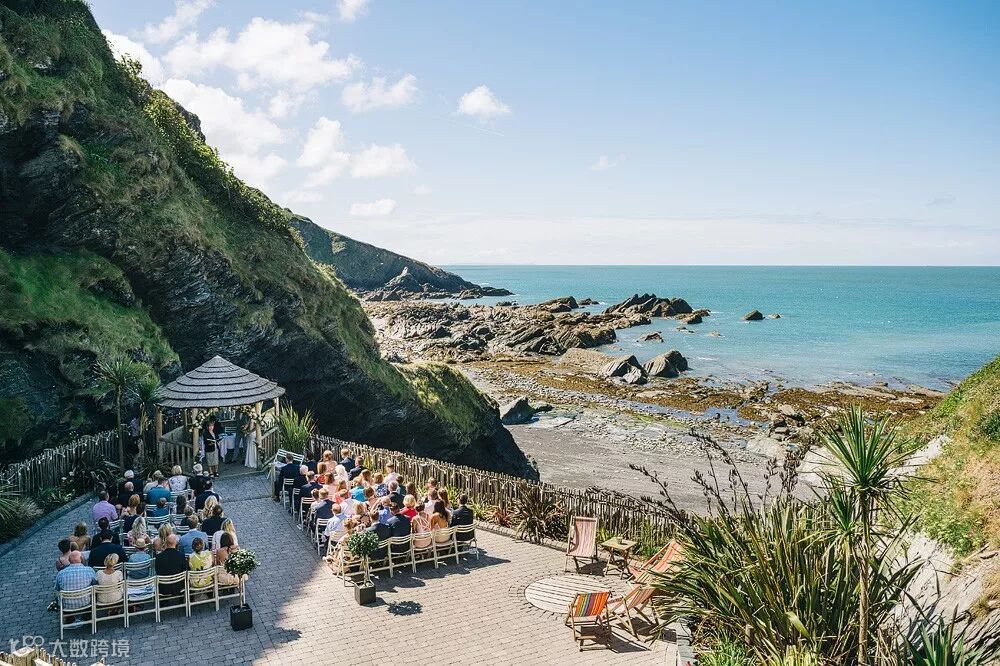 想要拍一组面朝大海春暖花开的结婚照?来这里就对咯~这个结婚场地就在山腰,可以俯瞰美丽的Devon海岸。如此黄金的位置,自然受到了很多新人的追捧~