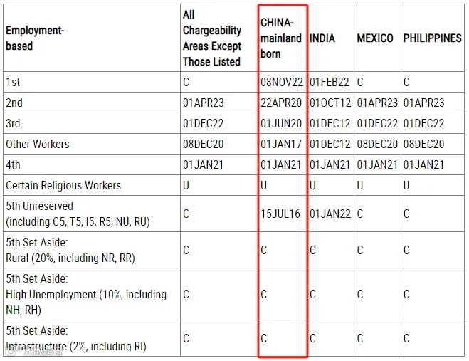 职业移民的EB-2和EB-3表A有所前进,表B无变化;亲属移民F1、F2B、F3类别也有一定程度前进。