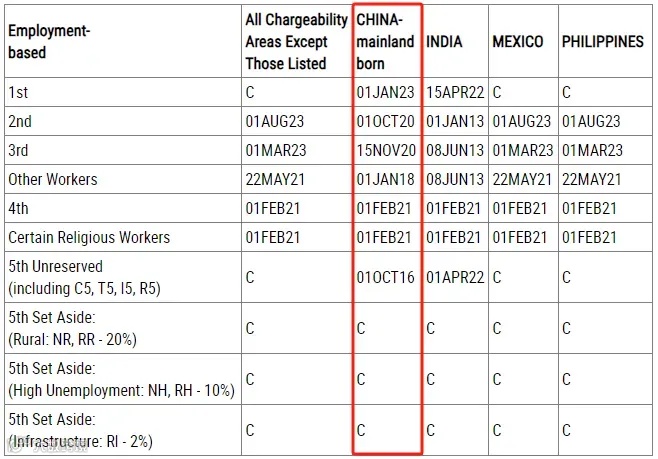 近日,美国国务院公布了2025年1月的绿卡移民排期。EB-2、EB-3小幅前进,EB-5预留签证类别仍无排期。
