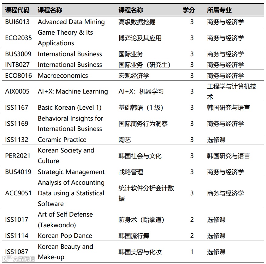 *项目费用包含:汉阳大学项目费用;住宿预订服务费;选课指导;项目申请;学生签证申请指导服务;境外保险费