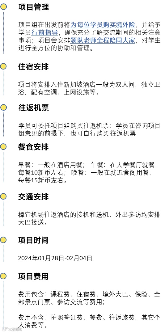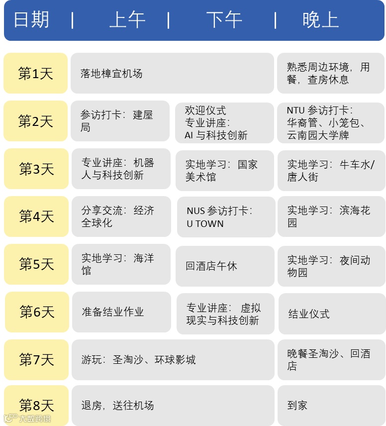 由新加坡国立大学和新加坡南洋理工大学知名老师授课,涵盖名师课程、小组讨论、结业仪式等内容。