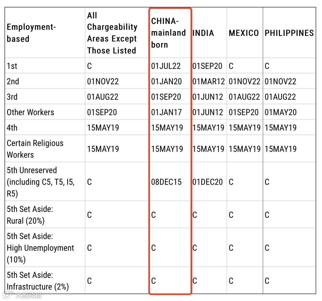 EB-4类别中特殊人员排期为2019年5月15日,前进134天