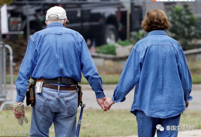 2015年,卡特与妻子罗萨琳手拉手做志愿活动。(东方IC)