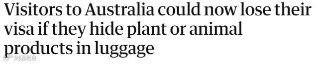 可能导致签证被取消的隐藏物品包括:肉制品、活体动物和动物繁殖材料、植物材料、种子、传染源、微生物和真菌。这些规定涵盖了一系列游客,包括:国际学生、打工度假者和临时工作人员,涉嫌违反者可被拘留4小时进行讯问。