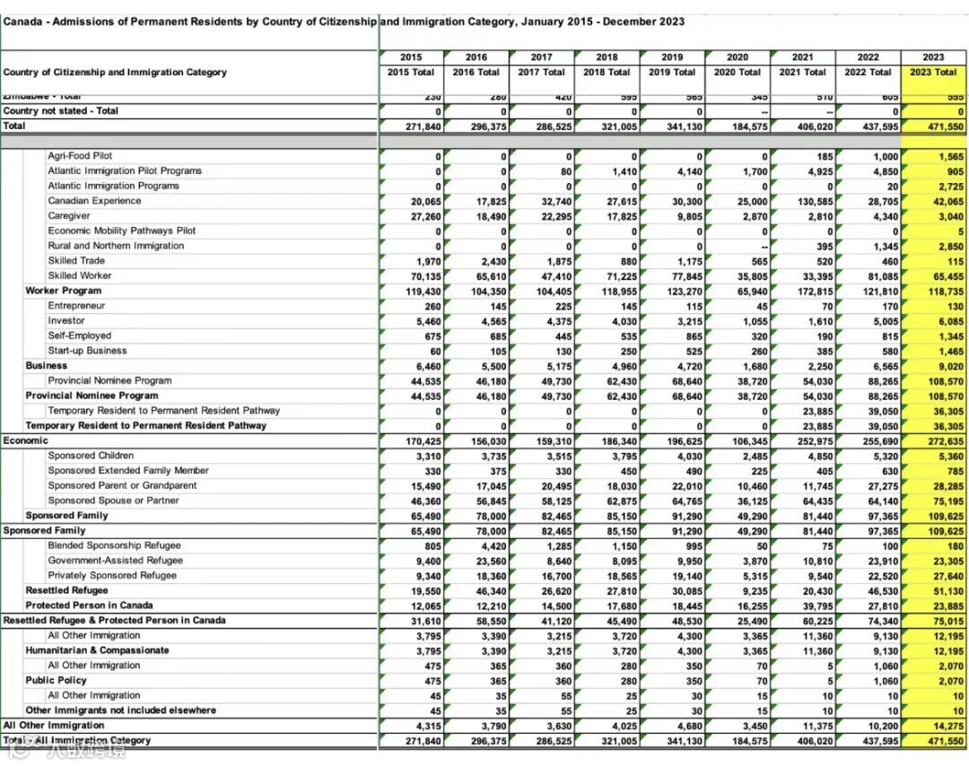2023年,加拿大移民局发放了471,550张枫叶卡,比2022年增长约7.8%。这是历史上第四次新移民人数超过40万人,创下了加拿大新移民人数的新纪录。其中,备受华人青睐的加拿大联邦创投SUV项目2023年移民人数也创历史新高,达到空前的1,465人,是2022年SUV移民人数的2.5倍。