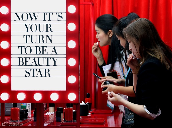 Visitors try out different lipsticks at the L'Oreal booth during the second China International Import Expo in Shanghai last year. [Photo/Xinhua]