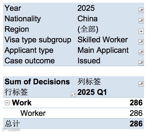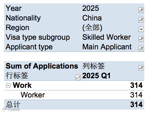 2025年第一季度总递交量为10930人,中国大陆递交量为314人,获批286人,拒签31人;