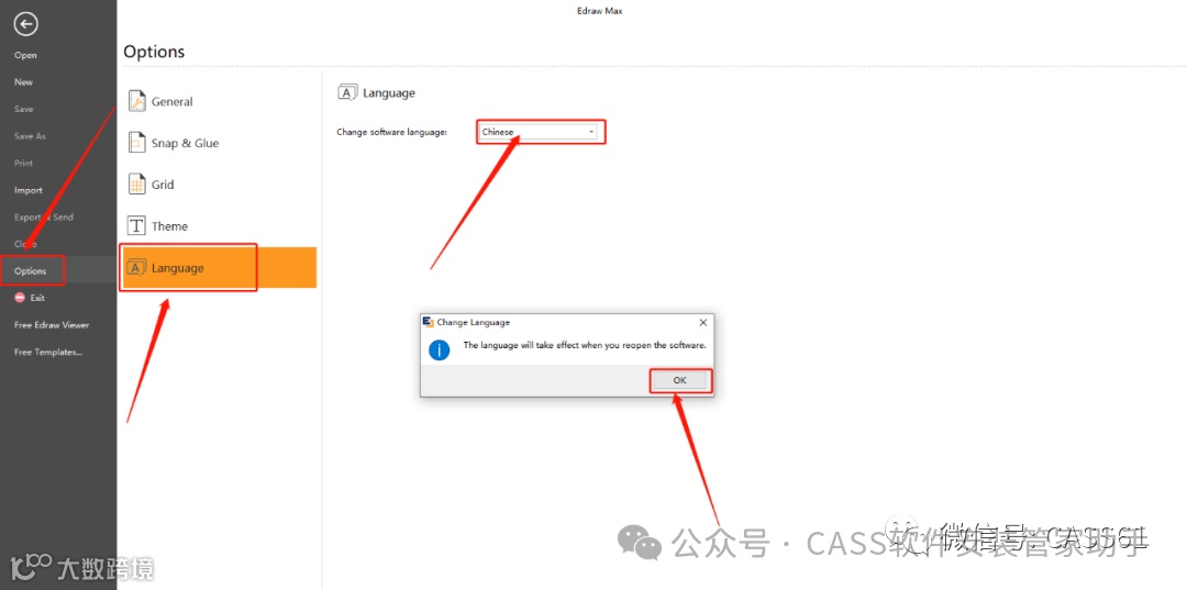 19.点击【Language】,然后语言选择【Chinese】,点击【OK】;