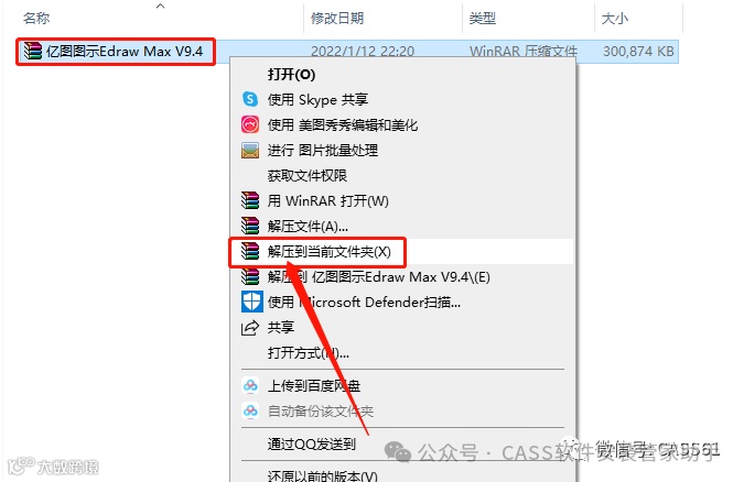 1.鼠标右击压缩包选择【解压到当前文件夹】;