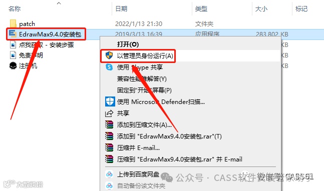 4.鼠标右击【EdrawMax9.4.0安装包】安装程序,选择【以管理员身份运行】;