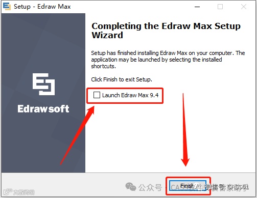 12.取消勾选【Launch Edraw Max 9.4】,点击【Finish】;