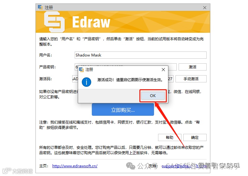 26.将用户名和密钥分别粘贴至软件的注册界面;