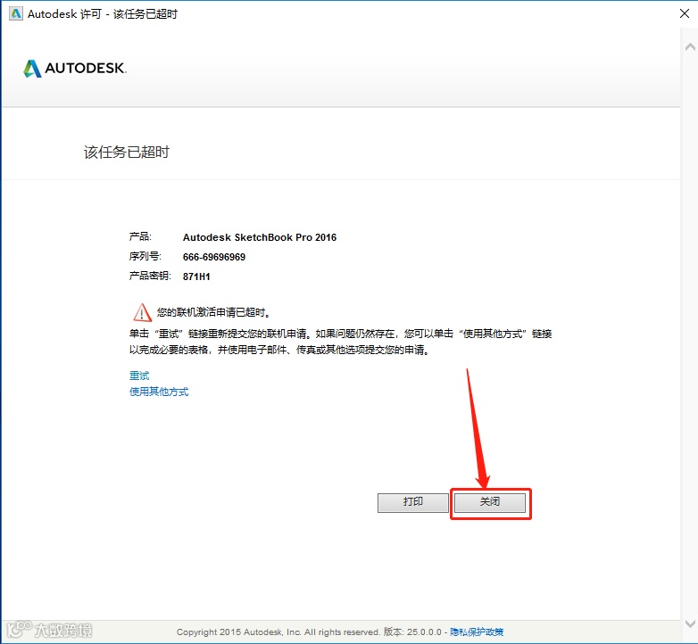 16.若出现如下图提示或者其它显示未激活的页面,点击【关闭】。