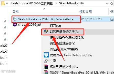 4.鼠标右击【SketchBookPro_2016……】,选择【以管理员身份运行】。