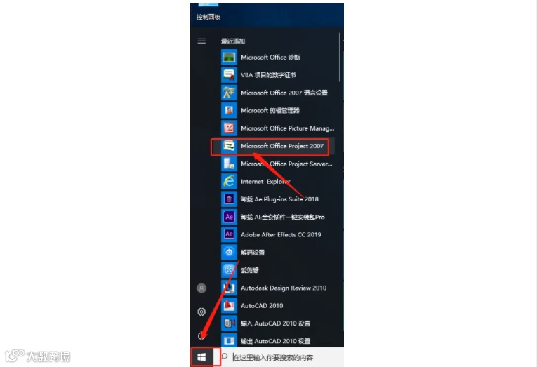 12.在桌面左下角的开始菜单栏中打开project 2007软件。